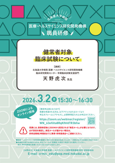 「臨床研究に関する研修会(4/24)」のオンライン開催について