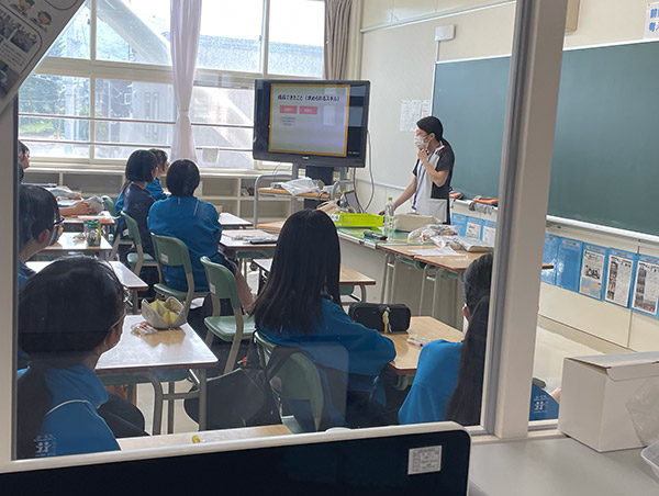 札幌市内の中学校で、治験コーディネーターの小北さんが職業講話を行いました。
